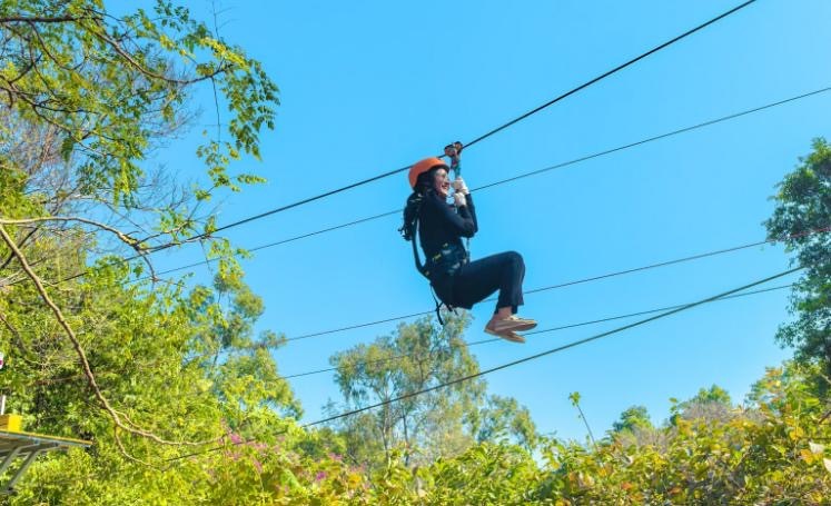 据悉,自广州地铁11号环线开通后,不少市民游客乘坐地铁来到白云山,从南门进山,在挑战了“丛林飞跃”之后仍意犹未尽,又到云山西侧坐上“白云飞索”(全国最长高空滑索),从西门下山。