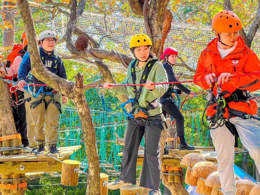 老牌5A景区白云山正在不断丰富新体验。日前,白云山鸣春谷辖内的“云山丛林飞跃探险乐园”正式开业,吸引了众多亲子家庭及年轻情侣“飞身挑战”。
